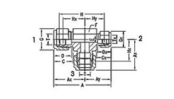 | T Tube OD | Tx Tube OD | A | Ax | Ay | C | Cx | D | Dx | E min. | F A/F | G A/F | G x A/F | H | Hx | Hy |